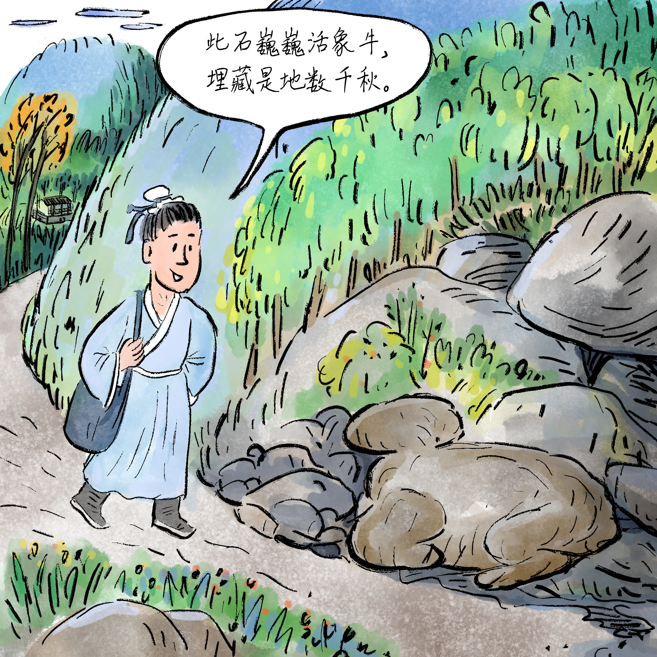 放牛坪在盘江河蛮婆渡独揽的沙滩上,相传李白频繁在此放牛习字而名。有一次,他放的牛把别东说念主家玉米苗吃了要他赔,李白说:“牛口有粪,吃了一天长一寸,怎么要喊赔呢?” 到了晚上,李白用粪水给牛吃过的玉米苗浇灌了一遍。第二天,东说念主家去地里一看,居然被牛啃过的玉米苗子长了一寸多。从那以 后,凡青莲的牛吃了庄稼,都毋庸赔了。“牛口有粪,吃了一天长一寸!”也就成了当地的农谚。