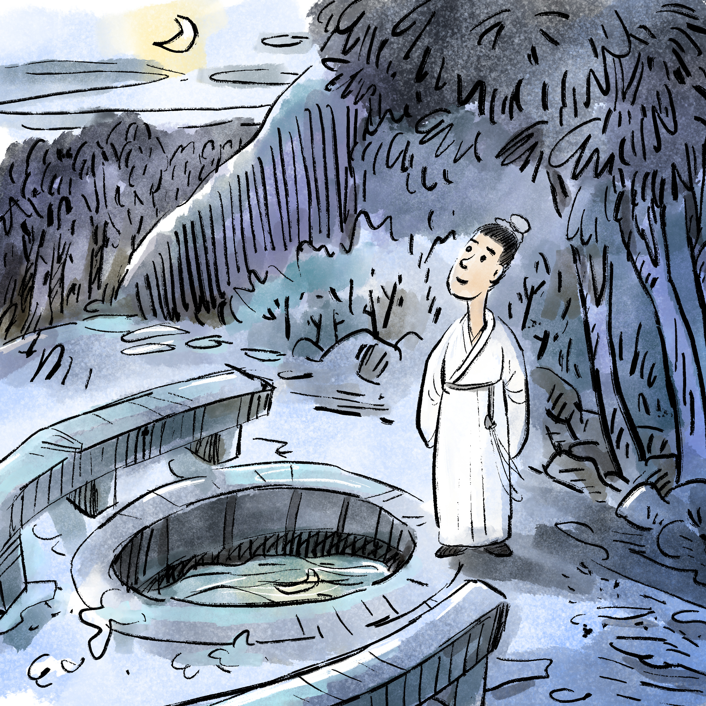 洗墨池在青莲粉竹楼后500米处,原名蒲花井,李白念书常常和胞妹李月圆用井水磨墨洗砚,天长日久,井水变为墨色,故名。是扣问李白成为诗仙的主要物证。咫尺在池边还会闻到浅浅的墨香。