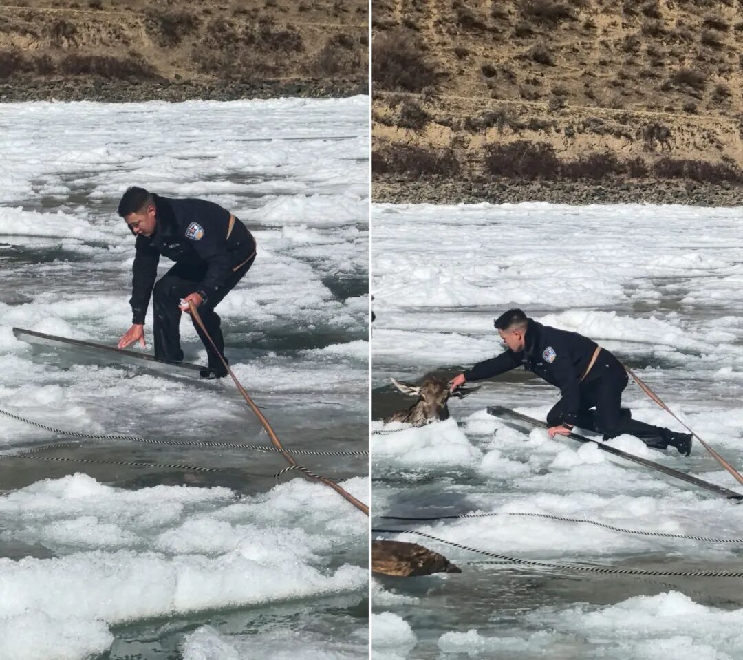 “鹿子要冰死了,被困在江中,快来挽救。”12月19日,四川甘孜州德格公安接到行家紧迫报警,称3只鹿子被困雅砻江中,无法脱困。