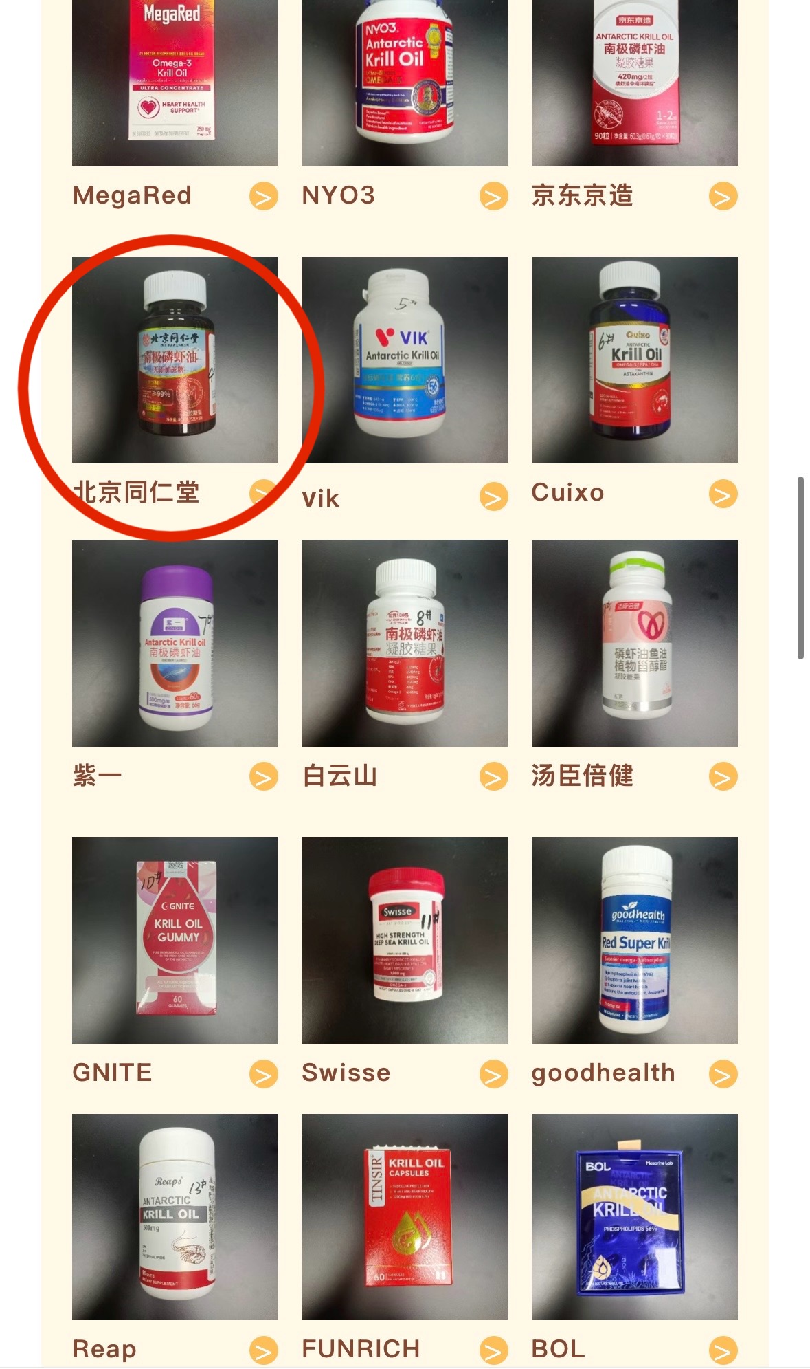 上海市消委会检测的15款南极磷虾油居品,“北京同仁堂”的一款产量磷脂含量为0